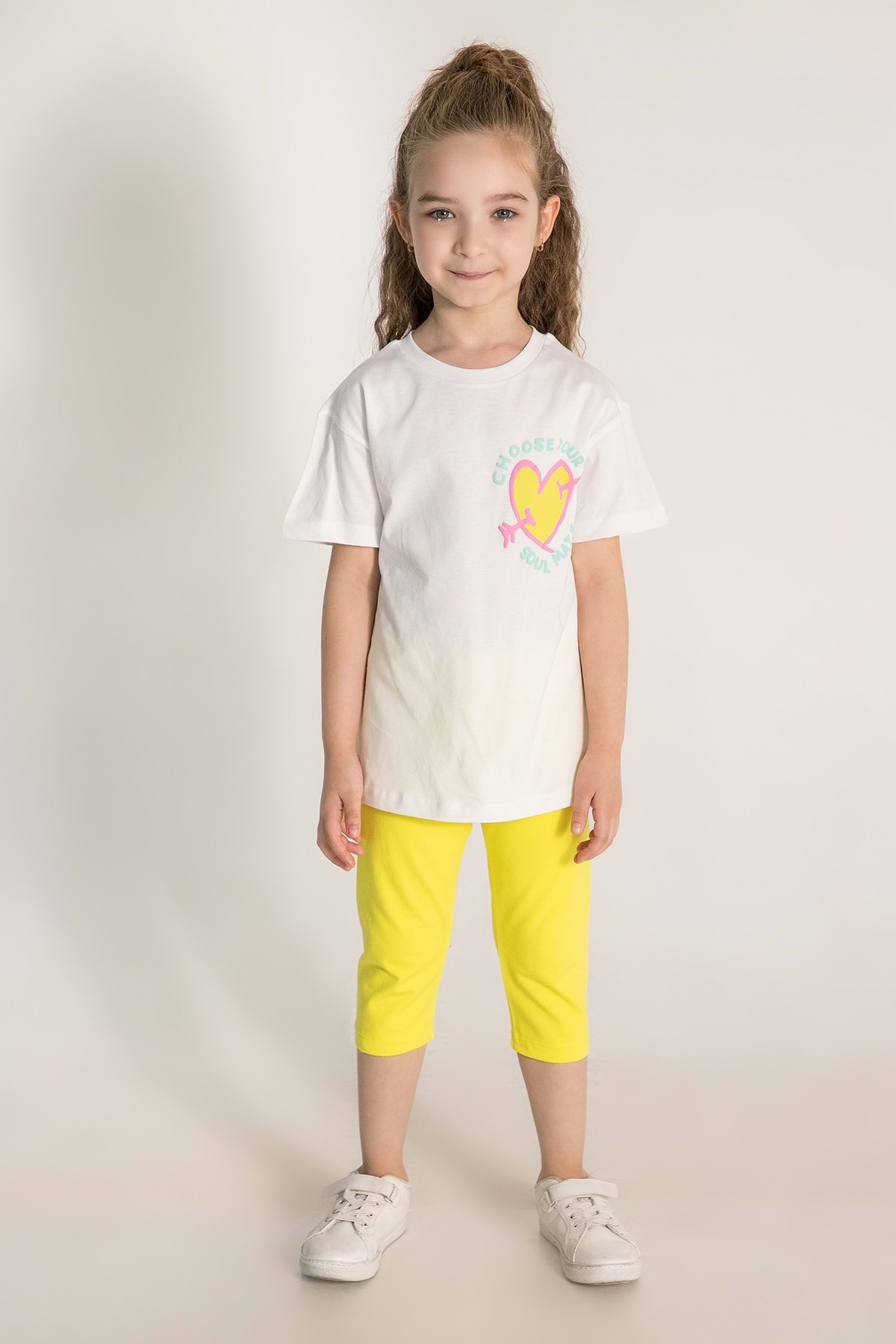 Bu şık ve rahat takım, kızınızın hem günlük hayatında hem de özel günlerde göz alıcı görünmesini sağlayacak. Bisiklet yaka tişörtü, modern ve sportif bir hava katarken, ön ve sırtındaki baskılar, takıma özgün bir karakter kazandırıyor. Taytı ise yumuşak ve esnek kumaşıyla gün boyu rahatlık sunuyor.