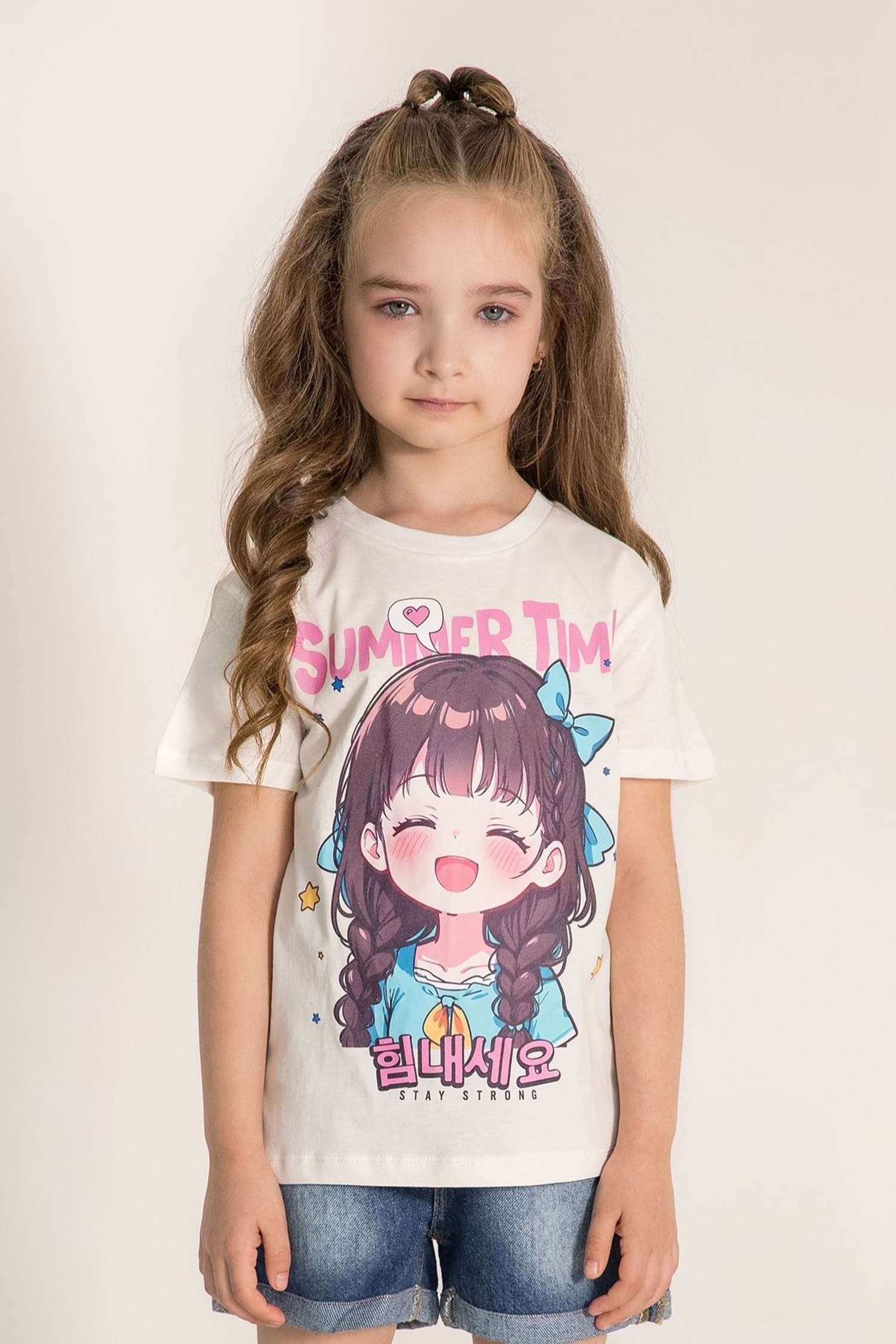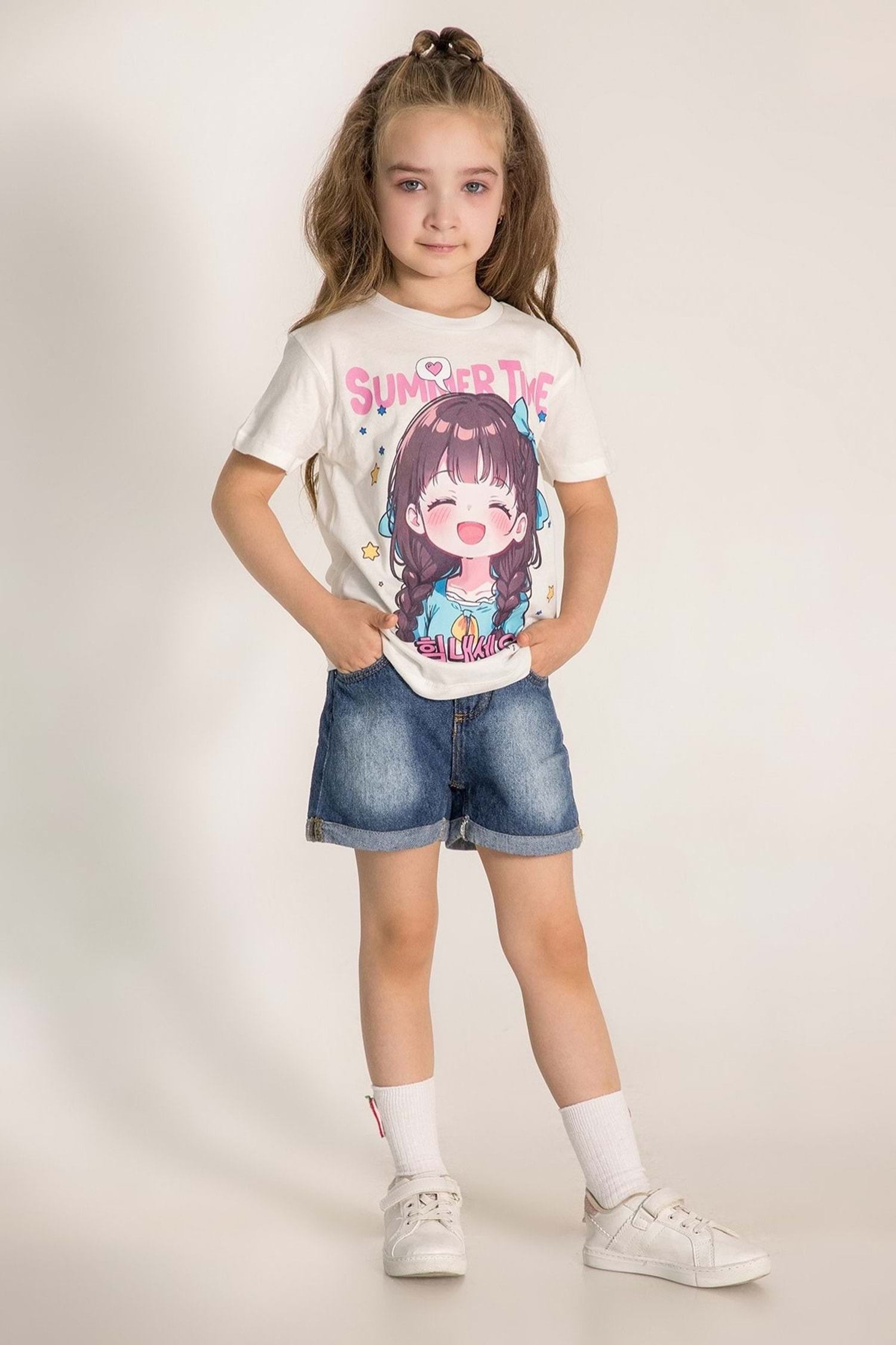 Önü Kız Çocuk Baskılı Bisiklet Yaka Kısa Kollu Kız Tişört Açıklaması