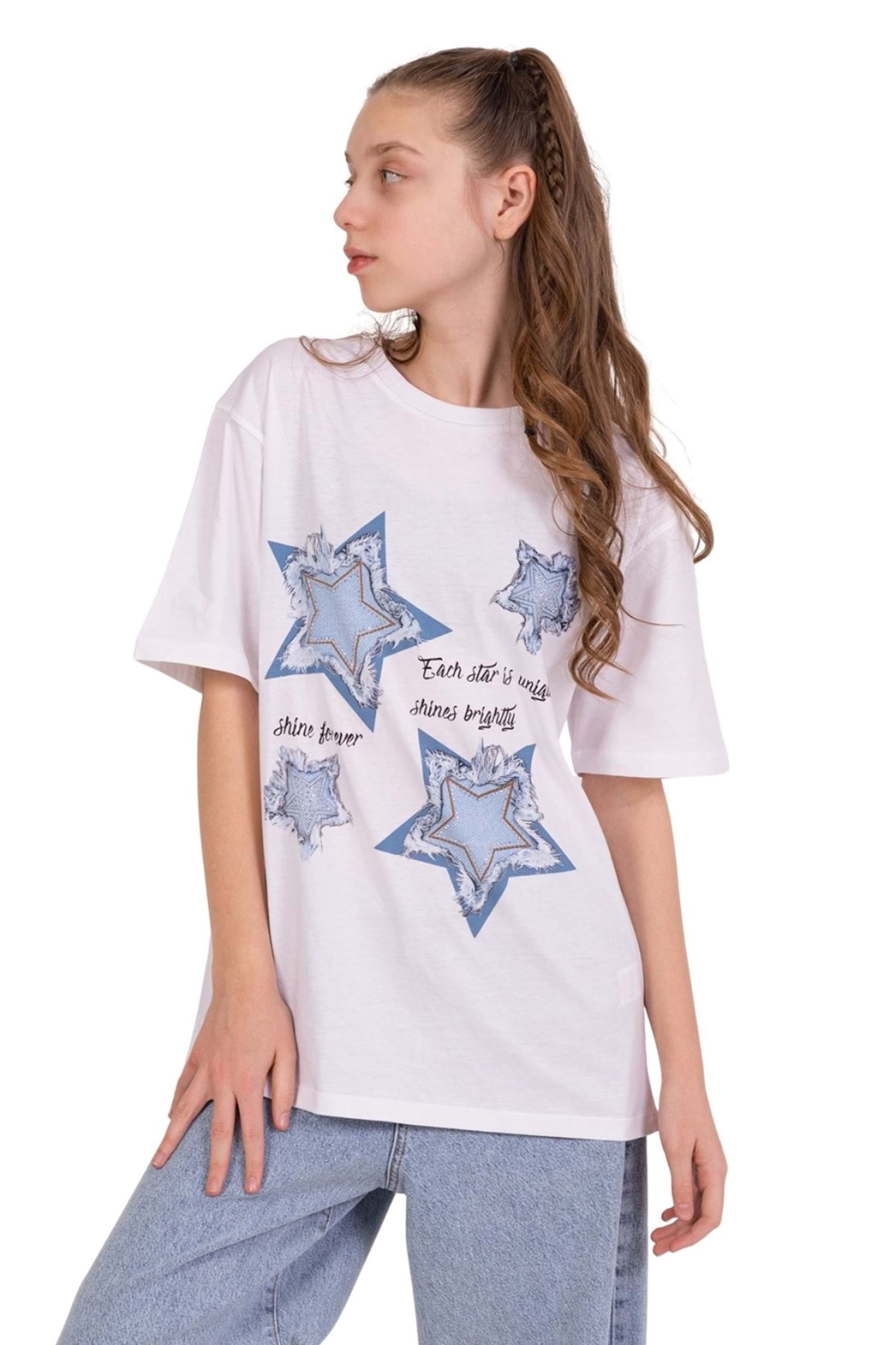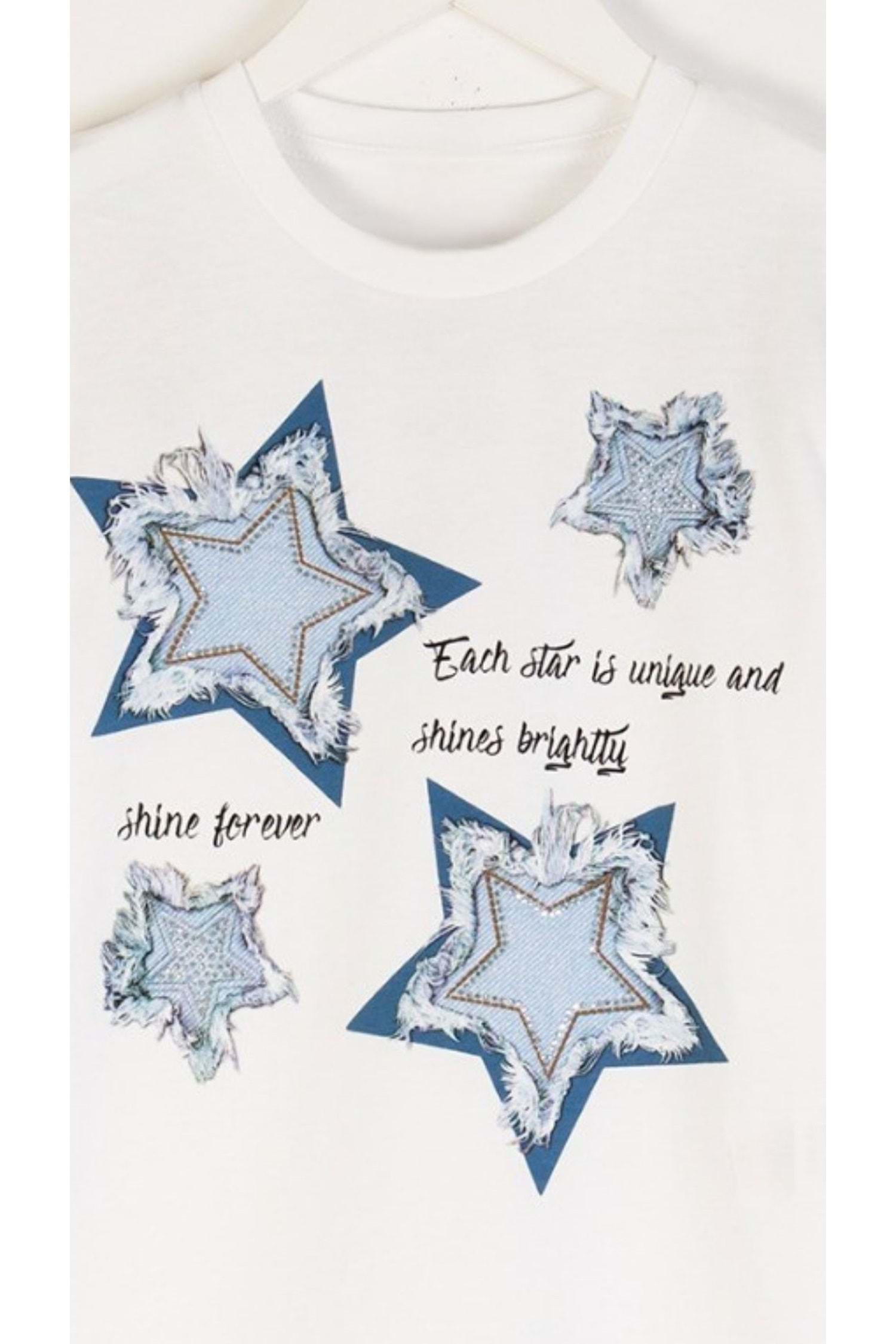 Yıldız baskısı, tişörte eğlenceli ve sevimli bir hava katar.